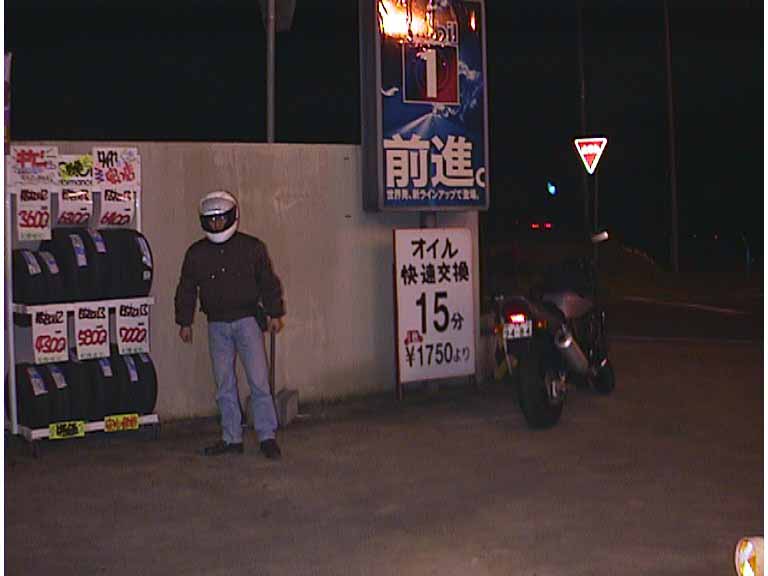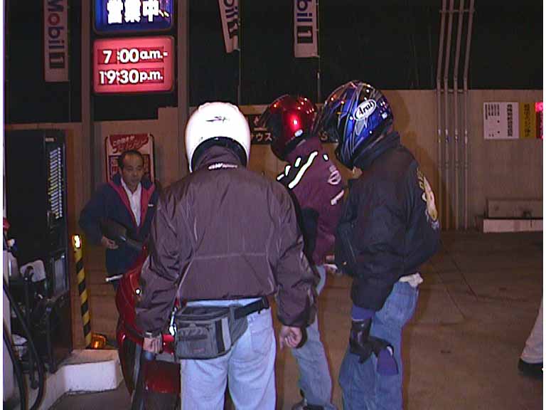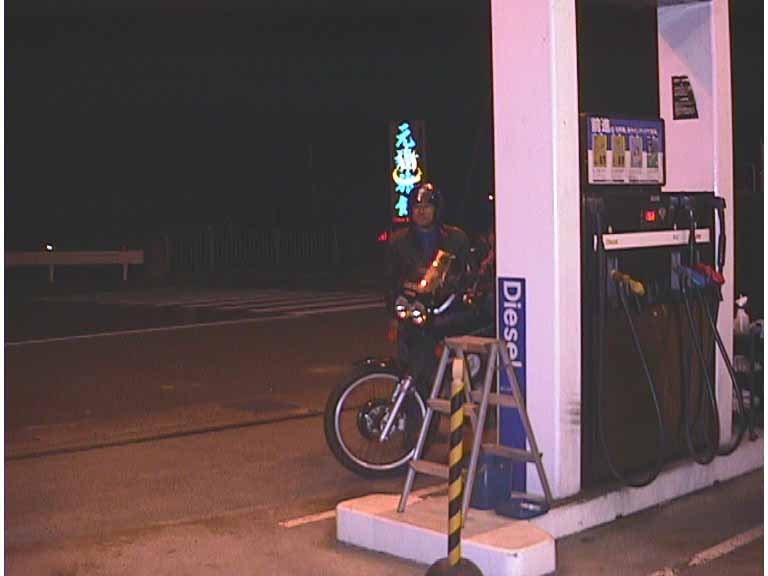 途中のガソリンスタンドで給油