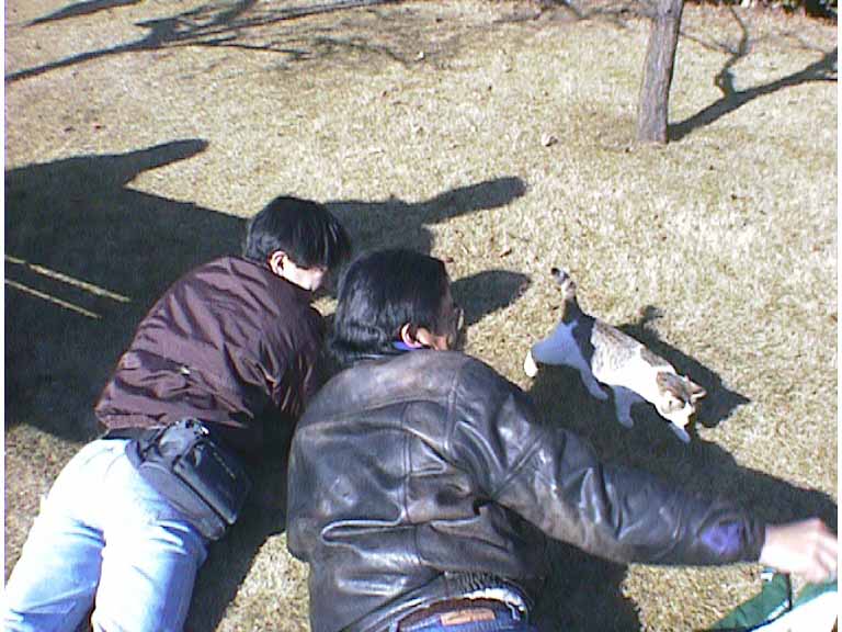 で、出発前にまた猫に遊ばれる八木さん