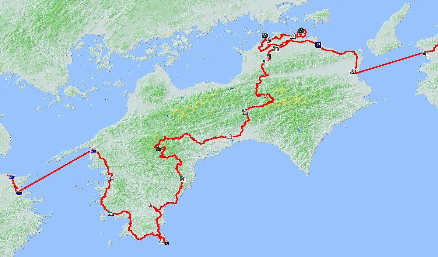 足摺岬 ~ 宿毛市 ~ 宇和島市 ~ 八幡浜港 ~ 臼杵港 ~ 大分大在港 |