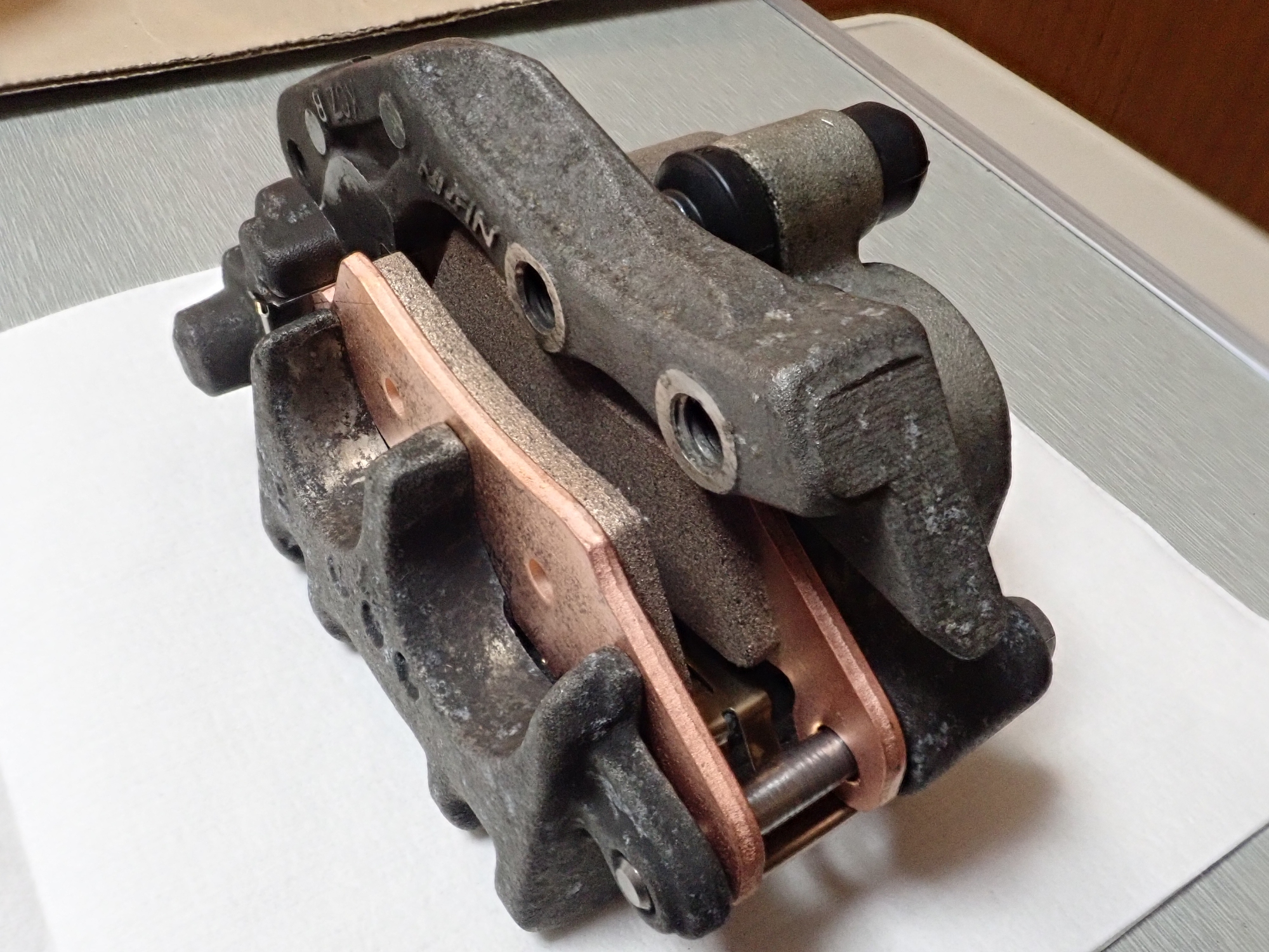 パッドはぎりぎりまで使用。新しいパッドはEBC FA185R。
