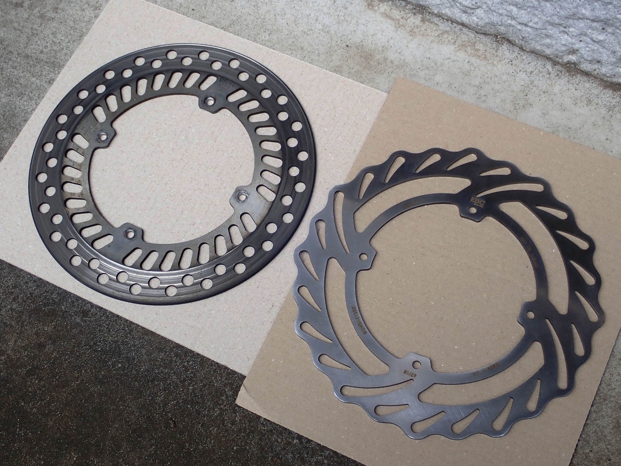 新しいディスクはEBC Contour Brake Rotor。新品469g厚さ3.5mmと交換前より4g軽い。熱容量大丈夫かな。