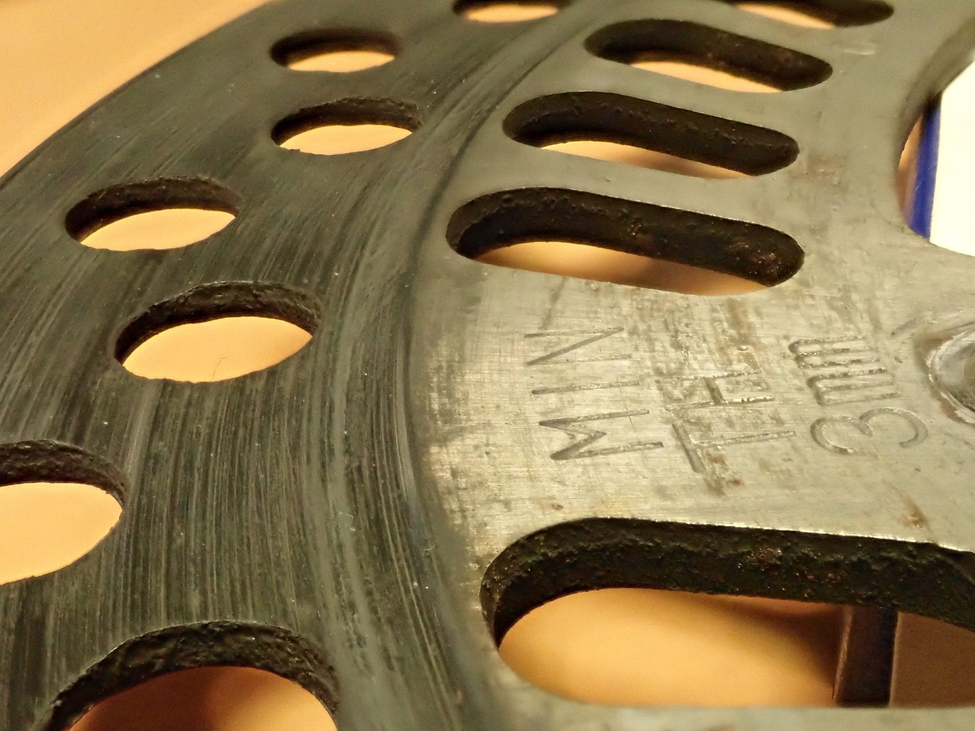 純正ディスクは新品591gが473gまで減ってました。厚さは新品3.5mmが最薄箇所2.04mmに。使いすぎ。。。