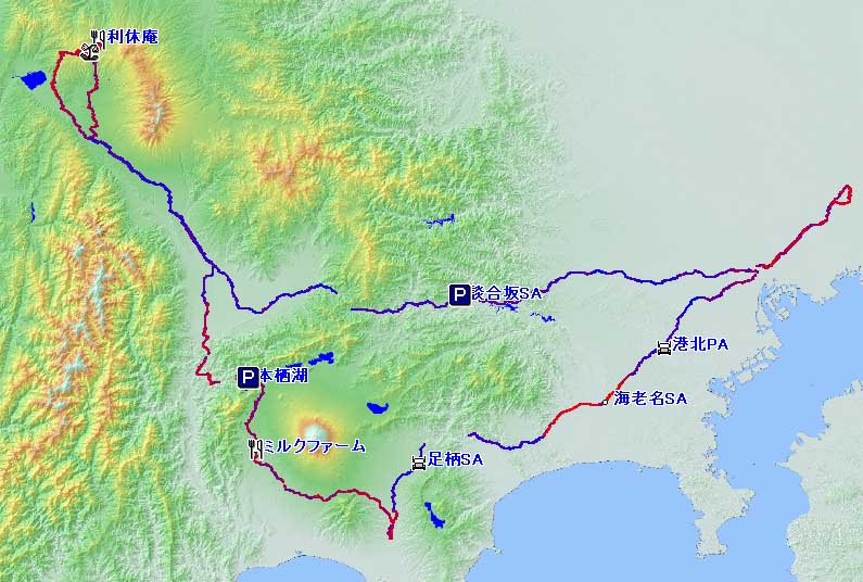 ↓ ↓ 首都高速、中央高速道、国道R20、 ↓ 県道R40 ↓ 車山高原 ↓ ↓ 県道R40、国道R152 ↓ 利休庵 ↓ ↓ 国道R152から南下 ↓ ミルクファーム ↓ ↓ 東名高速道 ↓