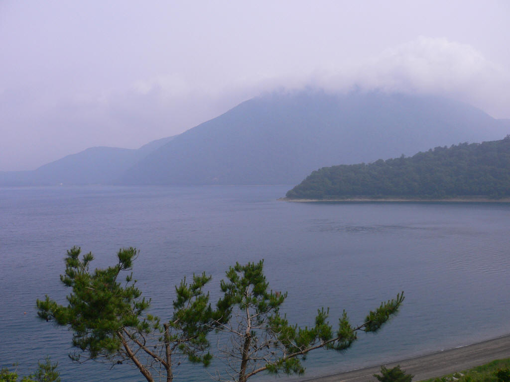 白樺湖で蕎麦、富士山